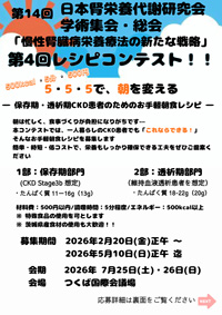 | 学会名 | 第14回日本腎栄養代謝研究会学術集会・総会 |